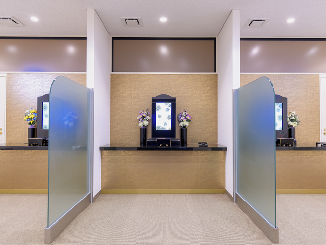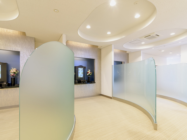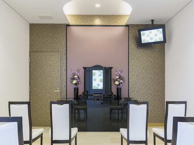 専用個室では、ご家族や親族が揃ってお参りができます。ご参拝の折には故人様のメモリアルな写真を皆様でご覧いただけます。